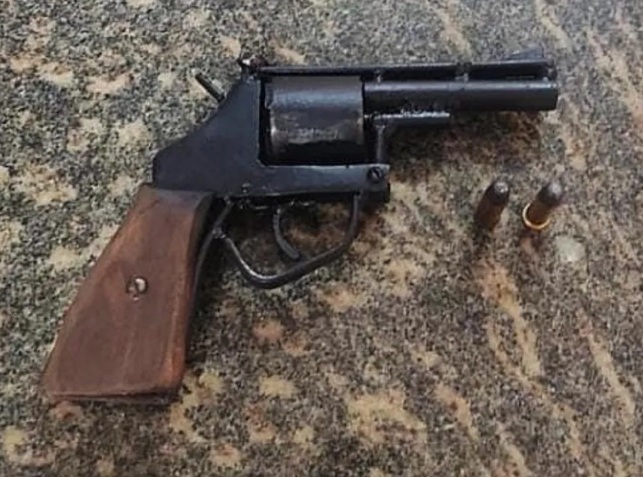 Ao chegar à rua, os policiais encontraram o suspeito e apreenderam com ele um revólver calibre 38 de fabricação caseira, que tinha duas munições intactas. Segundo policiais que foram ao local, a mulher tinha sido abrigada por vizinhos dentro de uma oficina e não ficou ferida.
