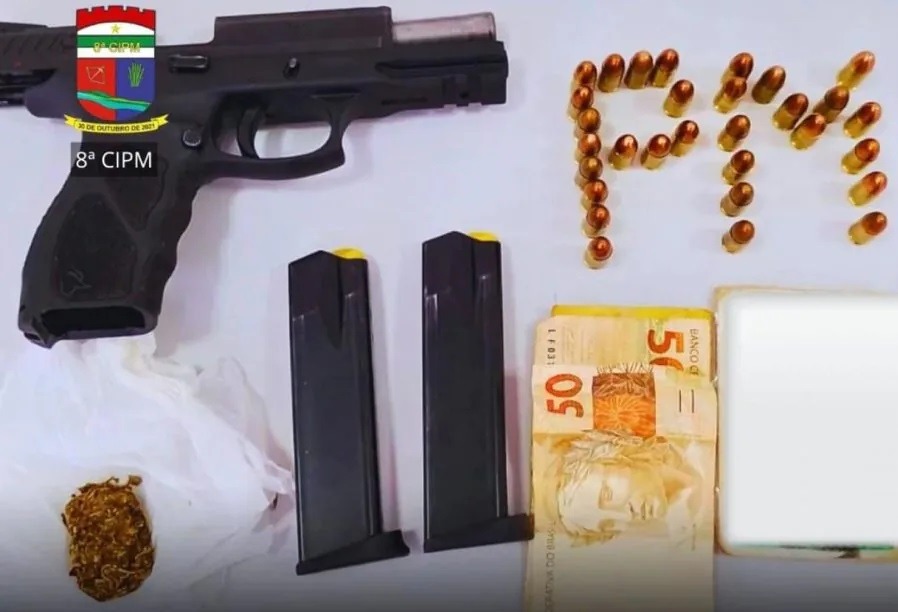 A ação, de acordo com a Polícia Militar, ocorreu quando os policiais realizavam patrulhamento no distrito do Retiro, identificaram um indivíduo em atitude suspeita. Durante a abordagem, os policiais encontraram com ele uma pistola Taurus, modelo TH9, carregada com 15 munições de calibre 9mm, além de um carregador extra, certa quantidade de maconha e R$ 120,00 em espécie.