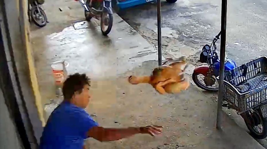 Homem joga frango abatido contra assaltante para evitar fuga; VÍDEO