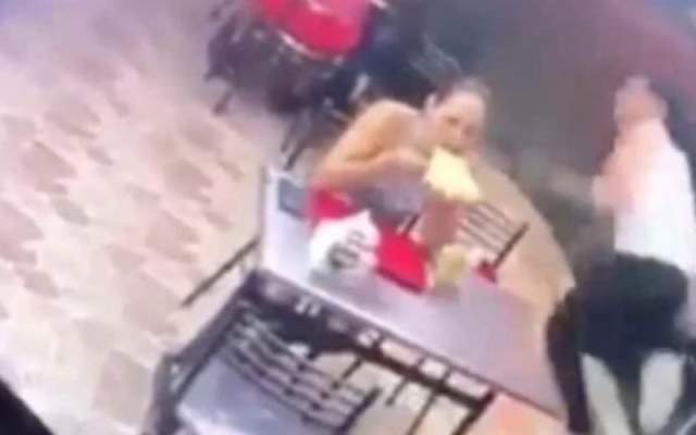 As câmeras registram o momento em que dois assaltantes chegam ao local e abordam os clientes em uma primeira mesa. Na sequência, os ladrões entram na lanchonete e roubam a loja, enquanto o casal segue lanchando.