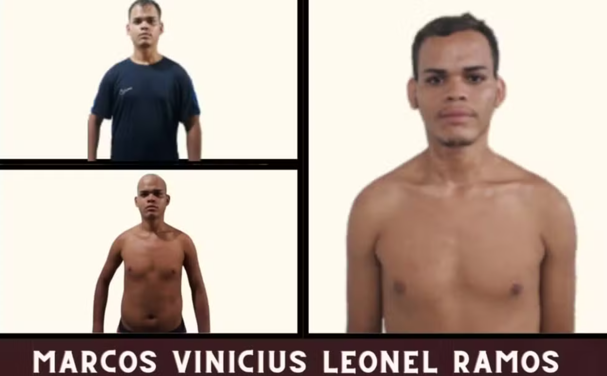 Marcos Vinícius estava preso há oito meses no pavilhão 01 da penitenciária, cumprindo parte de uma sentença de seis anos pelos crimes de tráfico de drogas e falsa identidade. A Seap divulgou imagens do apenado na entrada, durante o período de detenção e na saída.