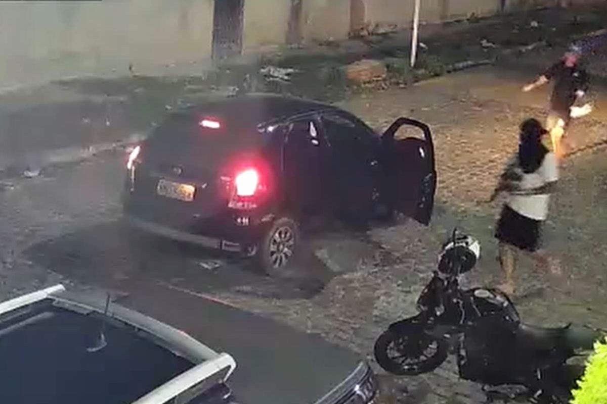 A ação foi flagrada por câmeras de segurança. Nas imagens, é possível dois homens descerem do veículo tipo Fiat Palio de cor preta, enquanto o motorista permaneceu com o carro ligado aguardando a dupla. Os criminosos fizeram ameaças e invadiram a casa.