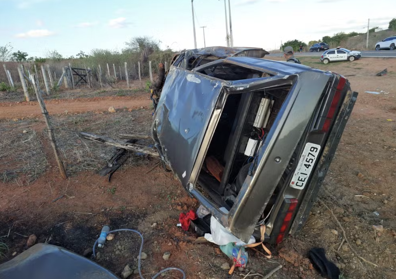 Idoso tenta desviar buraco, tomba carro e morre após ser lançado para fora da cabine na BR-405 no RN