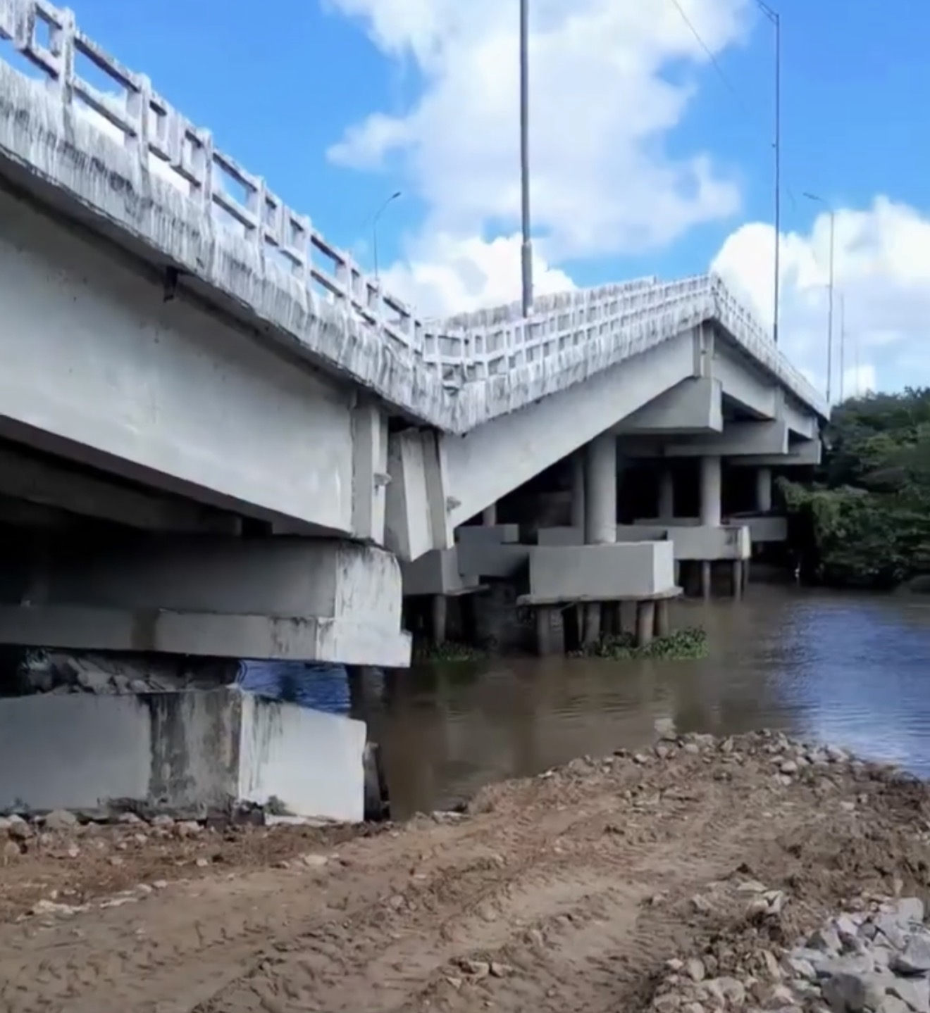 Parte da ponte sobre o Rio Paraíba, localizada na BR-101, cedeu na tarde deste sábado (7). O trecho fica na saída de João Pessoa em direção a Natal. Vídeo da situação foi divulgado pelo jornalista Clilson Júnior.