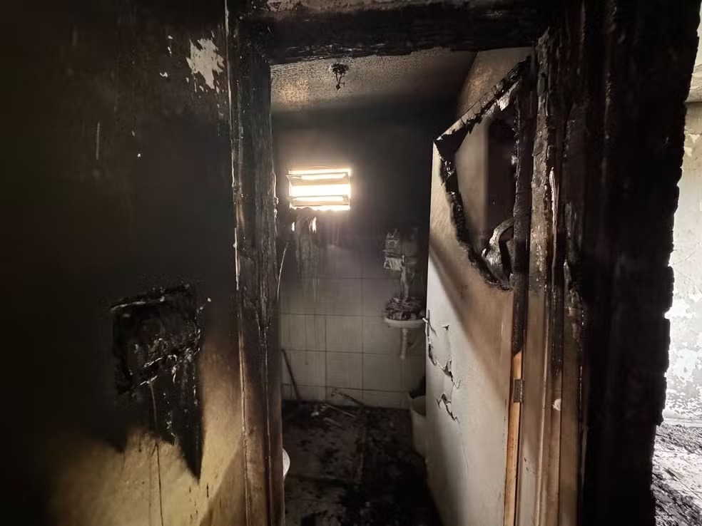 Pelo menos um quarto, o banheiro e a sala foram atingidos pelo fogo.