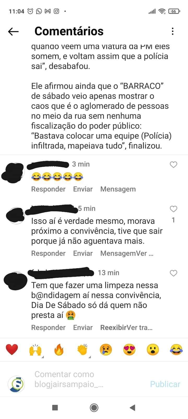 Ele afirmou ainda que o “BARRACO” de sábado veio apenas mostrar o caos que é o aglomerado de pessoas no meio da rua sem nenhuma fiscalização do poder público: “Bastava colocar uma equipe (Polícia) infiltrada, mapeiava tudo”, finalizou.