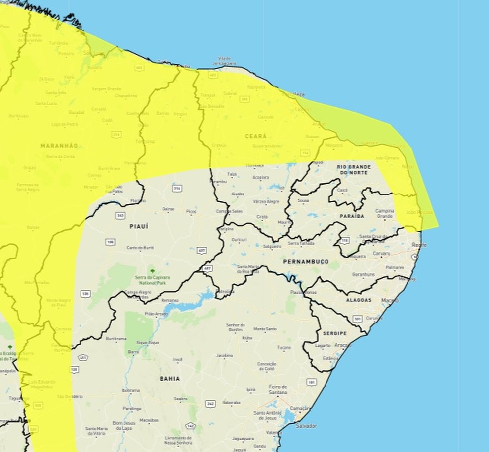 O alerta também é válido para cidades de outros estados do Nordeste, do Norte, do Sudeste, do Norte e do Centro-Oeste.