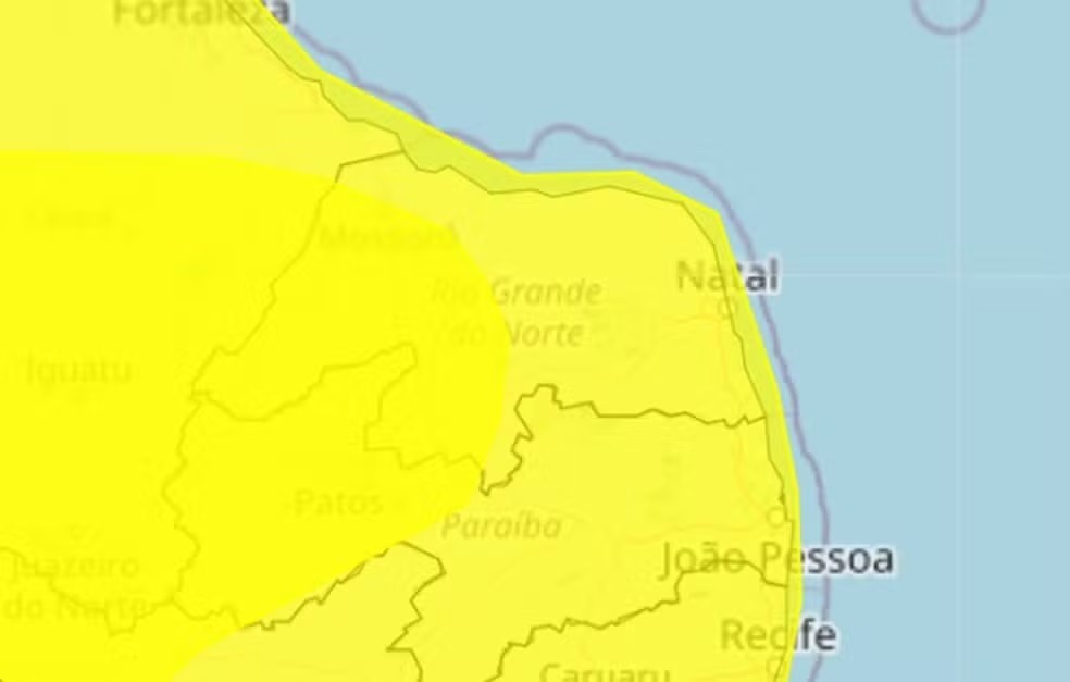 O alerta de baixa umidade foi emitido às 11h e vale até a noite desta quinta-feira (1º) em 78 municípios potiguares. A previsão é de umidade relativa do ar variando entre 30% e 20%, causando baixo risco de incêndios florestais e à saúde humana.