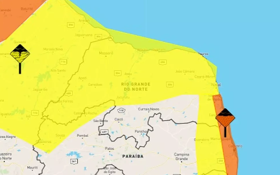 O Instituto Nacional de Meteorologia emitiu três alertas para o Rio Grande do Norte nesta sexta (3), que valem até 10h do sábado (4). Os alertas são de acumulados de chuvas – um de nível de perigo e outro de perigo potencial – e um outro de chuvas intensas – de nivel perigo potencial.
