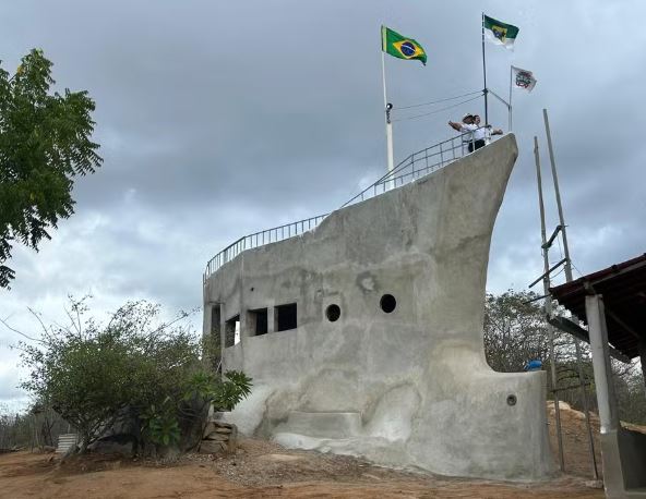 “Já ia bem adiantado esse mirante, chegou uma taxista, que veio deixar a gente aqui, aí dali do portão ela disse: ‘isso é um navio e parece com Titanic'”, contou Jailson.