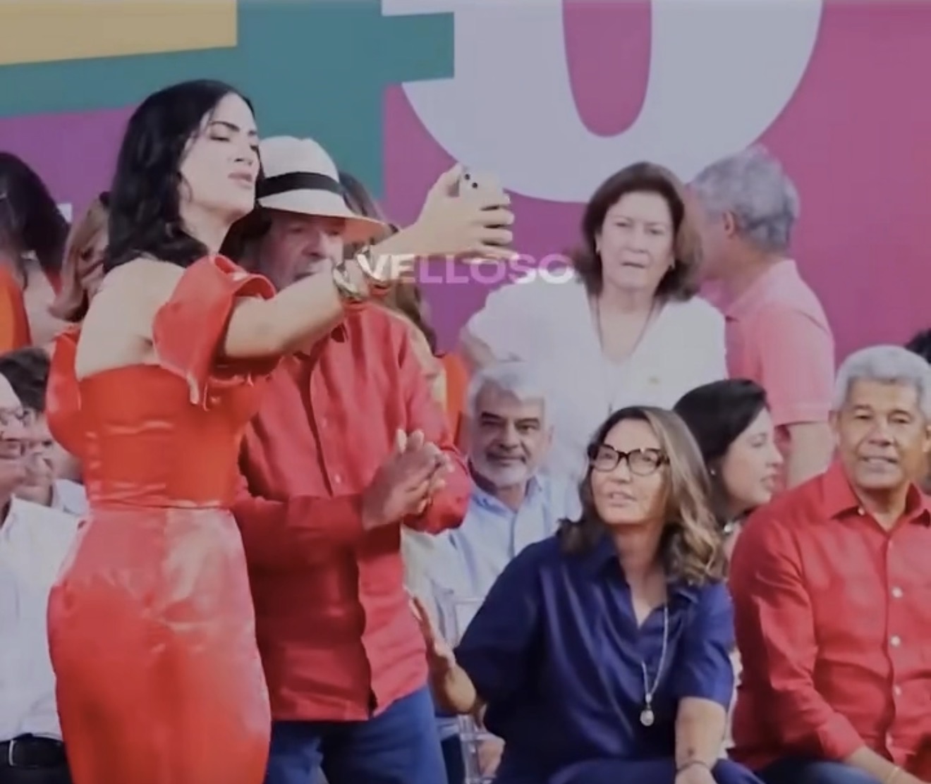 Nas imagens, uma mulher se aproxima para tirar uma foto com o presidente. Durante o registro, Janja permanece ao lado de Lula e mantém a mão sobre a perna dele. Em seguida, os dois se sentam e conversam brevemente, mas o conteúdo não é audível.