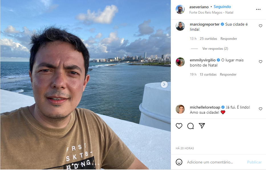 O jornalista global Alan Severiano contou um pouco sobre a sua relação com Natal-RN, onde nasceu, nas redes sociais. Além da história da cidade e sua relação com ela, o profissional deixou a dica aos seus seguidores: visitar o Forte dos Reis Magos. Não demorou muito até vários outros colegas de emissora e até mesmo o apresentador Márcio Gomes, ex-Globo e atual CNN Brasil, tecerem vários elogios a cidade. A publicação foi feita neste sábado (16).