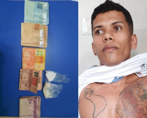 Foi preso na manhã dessa sexta feira um traficante de drogas e homicida, líder de facção criminosa, no bairro Planalto, na cidade de Nova Cruz-RN. Ele foi abordado por policiais militares do Efetivo do 5° DPRE, oportunidade em que estava na posse de dinheiro fracionado e cocaína.