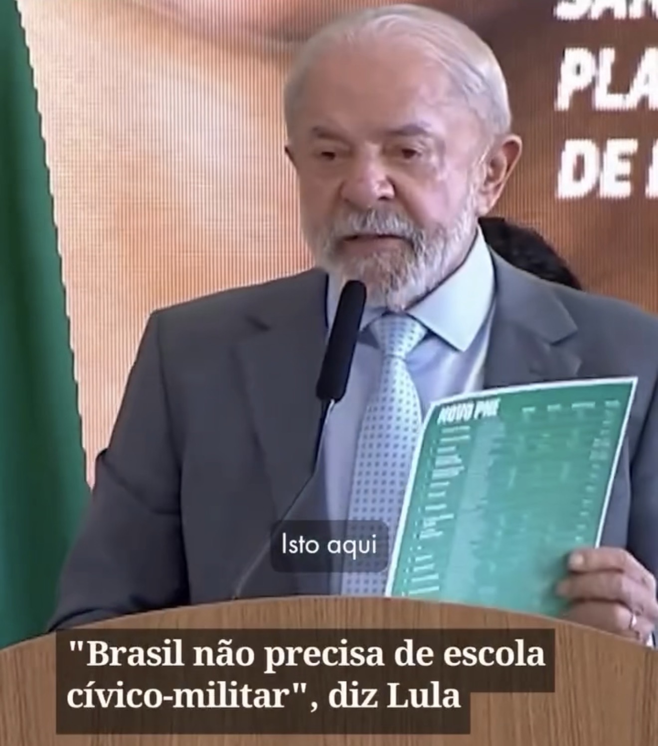 Ao comentar o tema, Lula afirmou que o país não precisa adotar o modelo cívico-militar como referência para a educação pública. Segundo ele, esse tipo de formação deve ser direcionado apenas a jovens que desejam seguir carreira nas Forças Armadas.