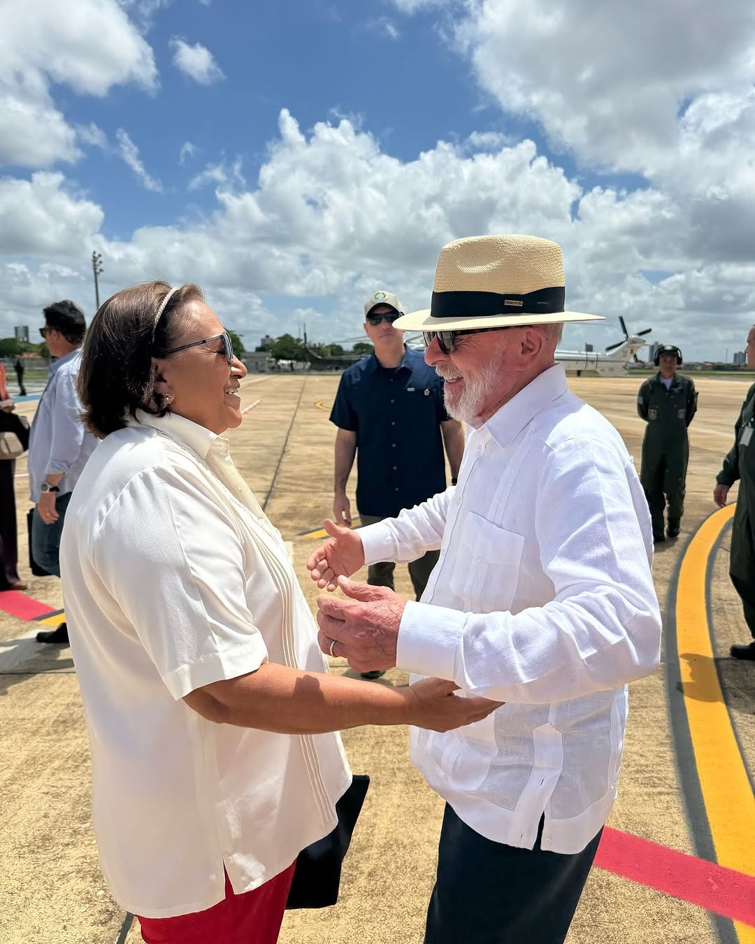 O primeiro contato do presidente Luiz Inácio Lula da Silva em solo Potiguar foi com a governadora Fátima Bezerra, por volta das 10 horas e 30min, no aeroporto de Mossoró.