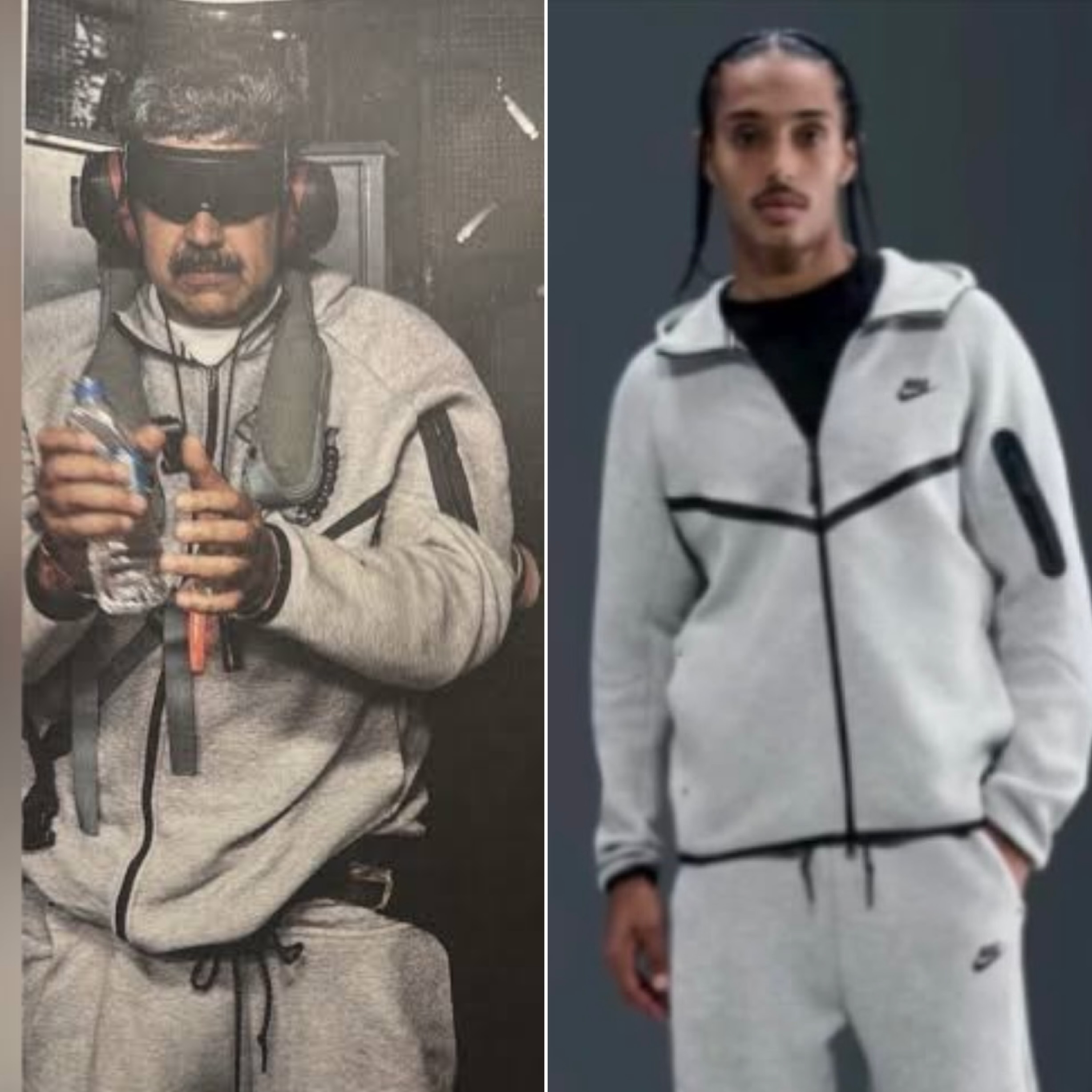 “Depois que o governo americano divulgou uma foto do ditador venezuelano, Nicolás Maduro, sendo transportado rumo aos EUA, neste sábado (3), um curioso detalhe chamou atenção nas redes sociais: o ditador trajava um conjunto Nike Tech Fleece avaliado em R$ 1.500.