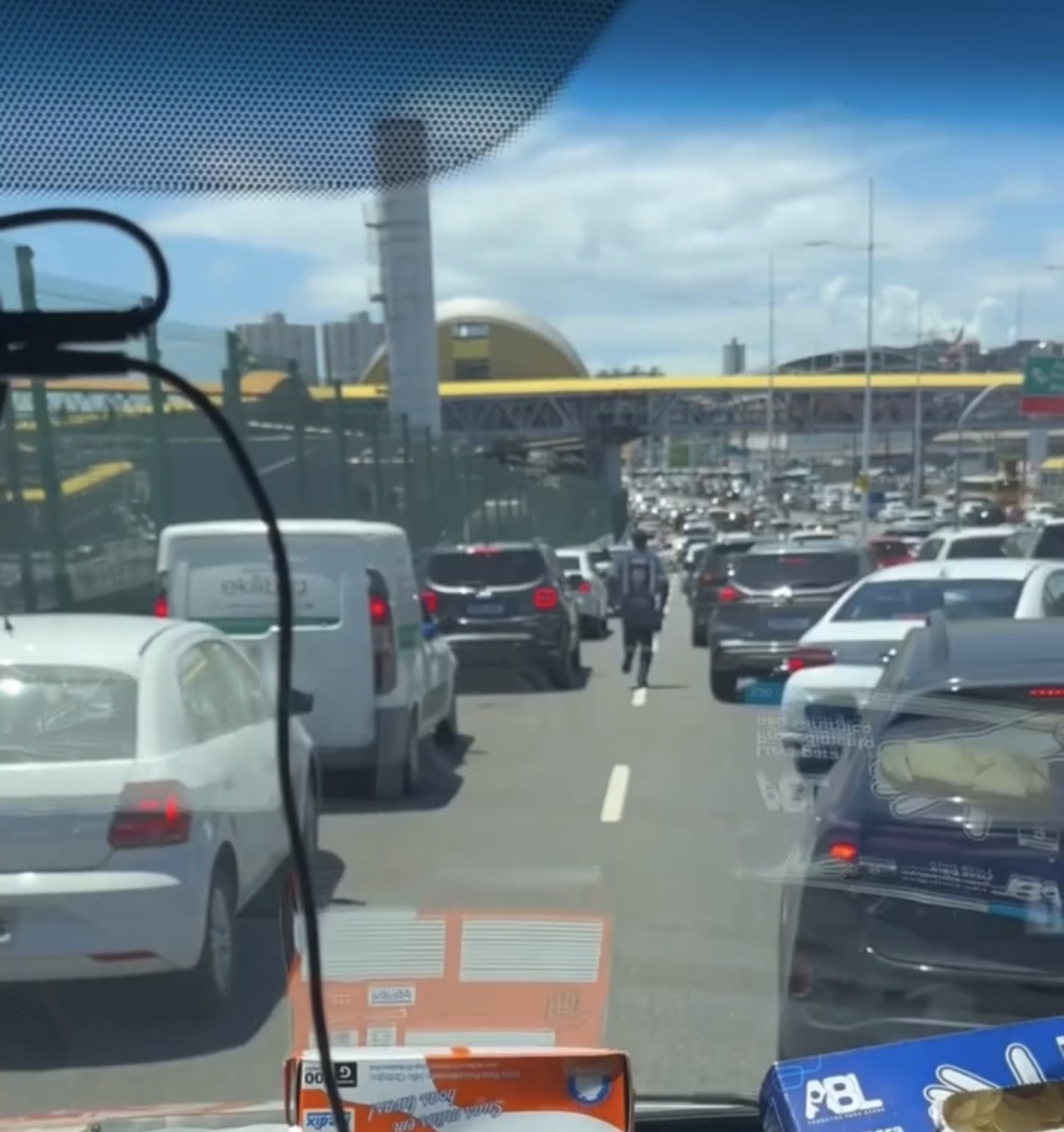 Diante da situação, um dos médicos decidiu sair da viatura e se dirigir aos veículos para tentar conscientizar os condutores e liberar a via.