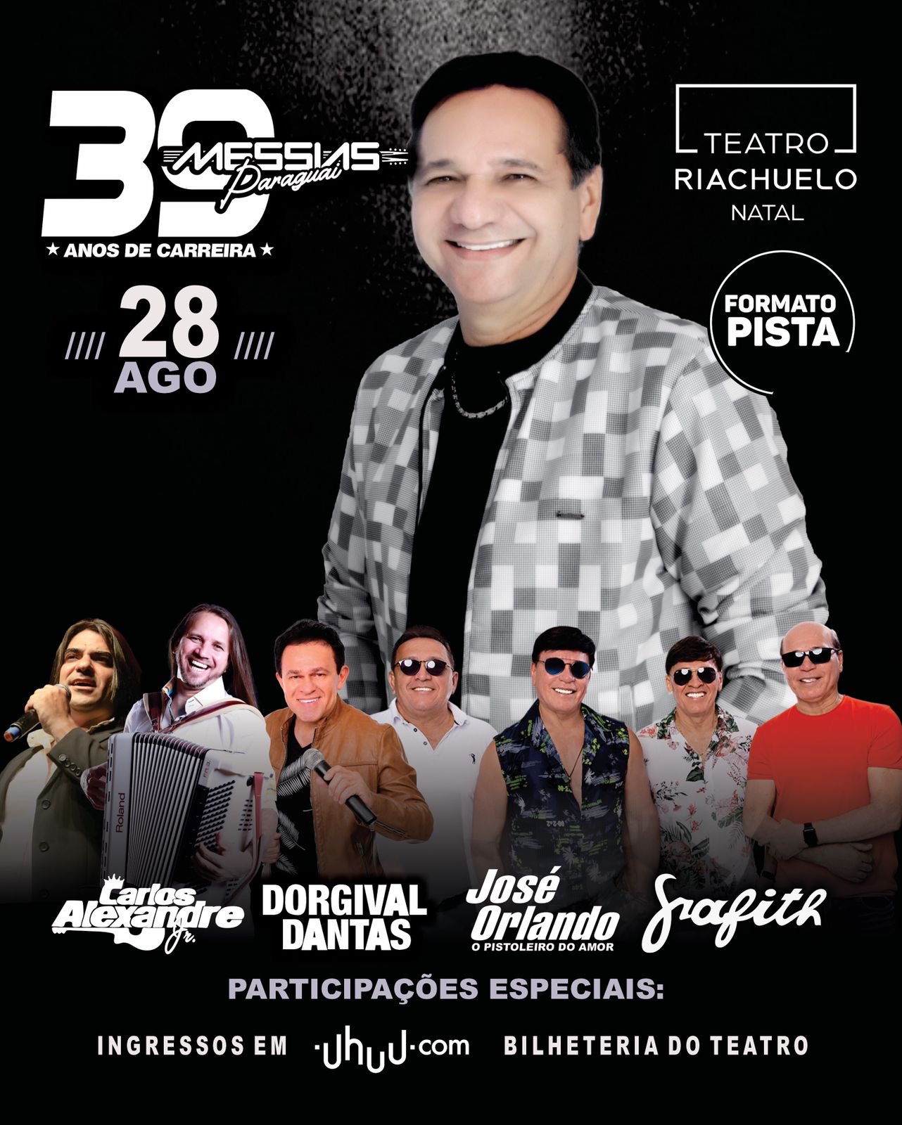 O cantor e compositor Messias Paraguai, conhecido como o Rei do Forró Brega do Rio Grande do Norte, vai comemorar seus 60 anos de idade e 39 anos de carreira em grande estilo, com um espetáculo no Teatro Riachuelo Natal, nesta sexta-feira, a partir das 19h.