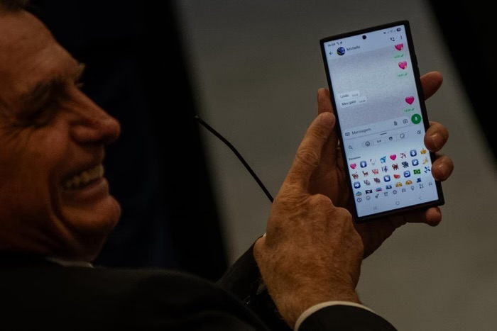 A troca começou quando o ex-presidente enviou uma selfie à ex-primeira-dama, que respondeu: “Oi, amor”. Na sequência, ela o elogiou: “Lindo. Meu gato.” Bolsonaro respondeu com uma série de emojis de coração rosa.