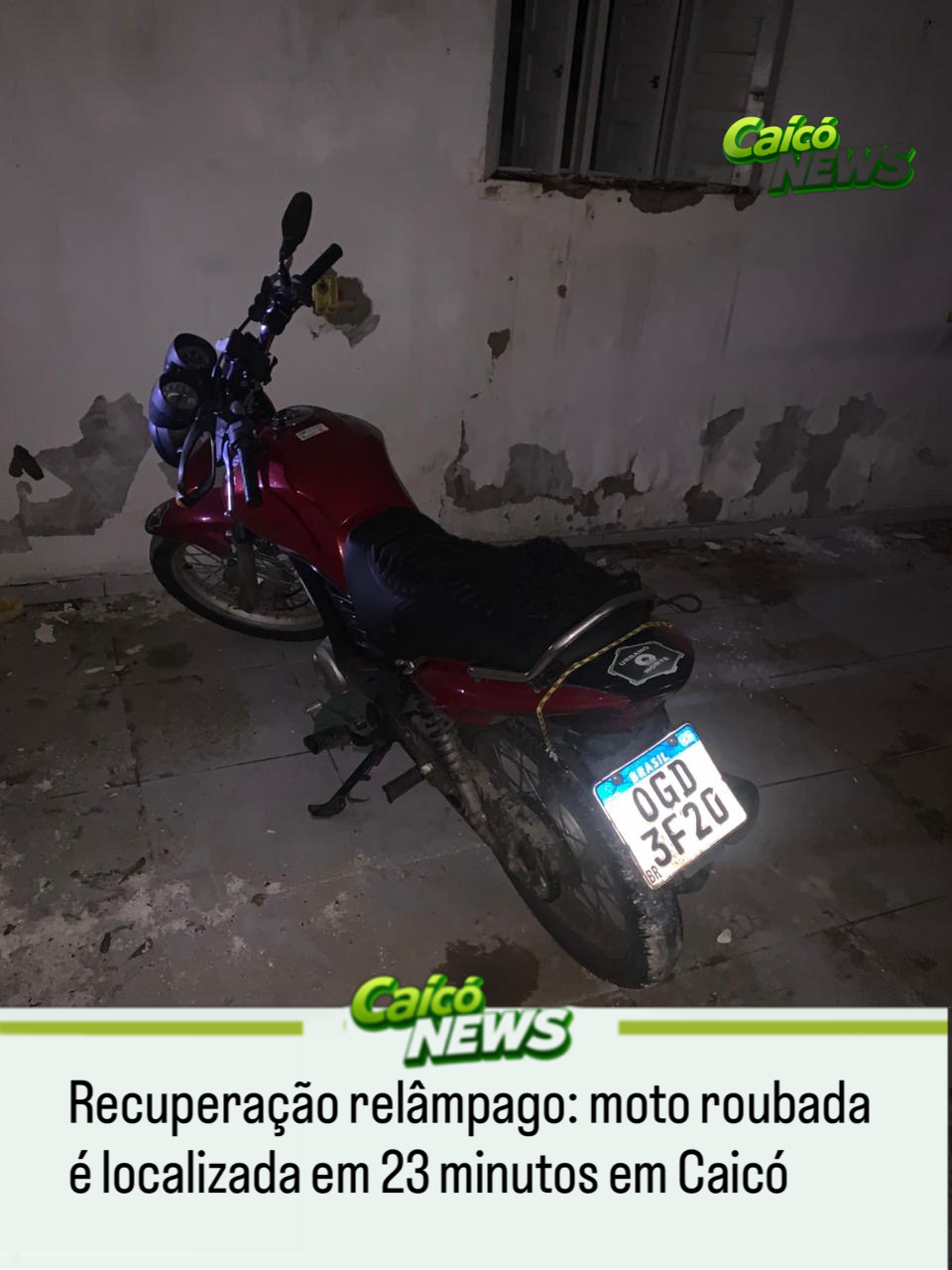 Uma moto roubada na madrugada deste sábado (18) foi recuperada poucos minutos após a ação criminosa em Caicó, graças ao sistema de rastreamento da empresa @somosmaiscaico (Moto+) e à atuação da Polícia Militar.