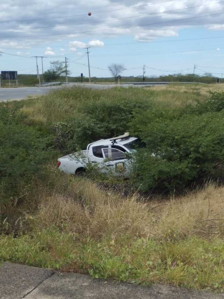 Na tarde deste sábado, 17, uma viatura do Instituto Técnico e Científico de Polícia colidiu com blocos de proteção (meio fio) na curva da rotatória que liga Caicó a São José do Seridó, e desceu o barranco.
