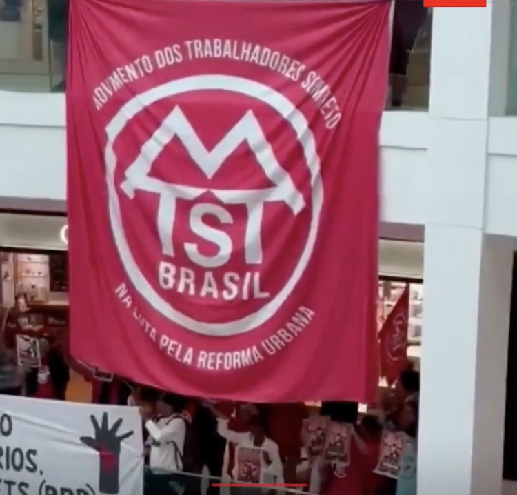 Em nota, o movimento defendeu uma reforma tributária progressiva. Faixas foram exibidas dentro do shopping.