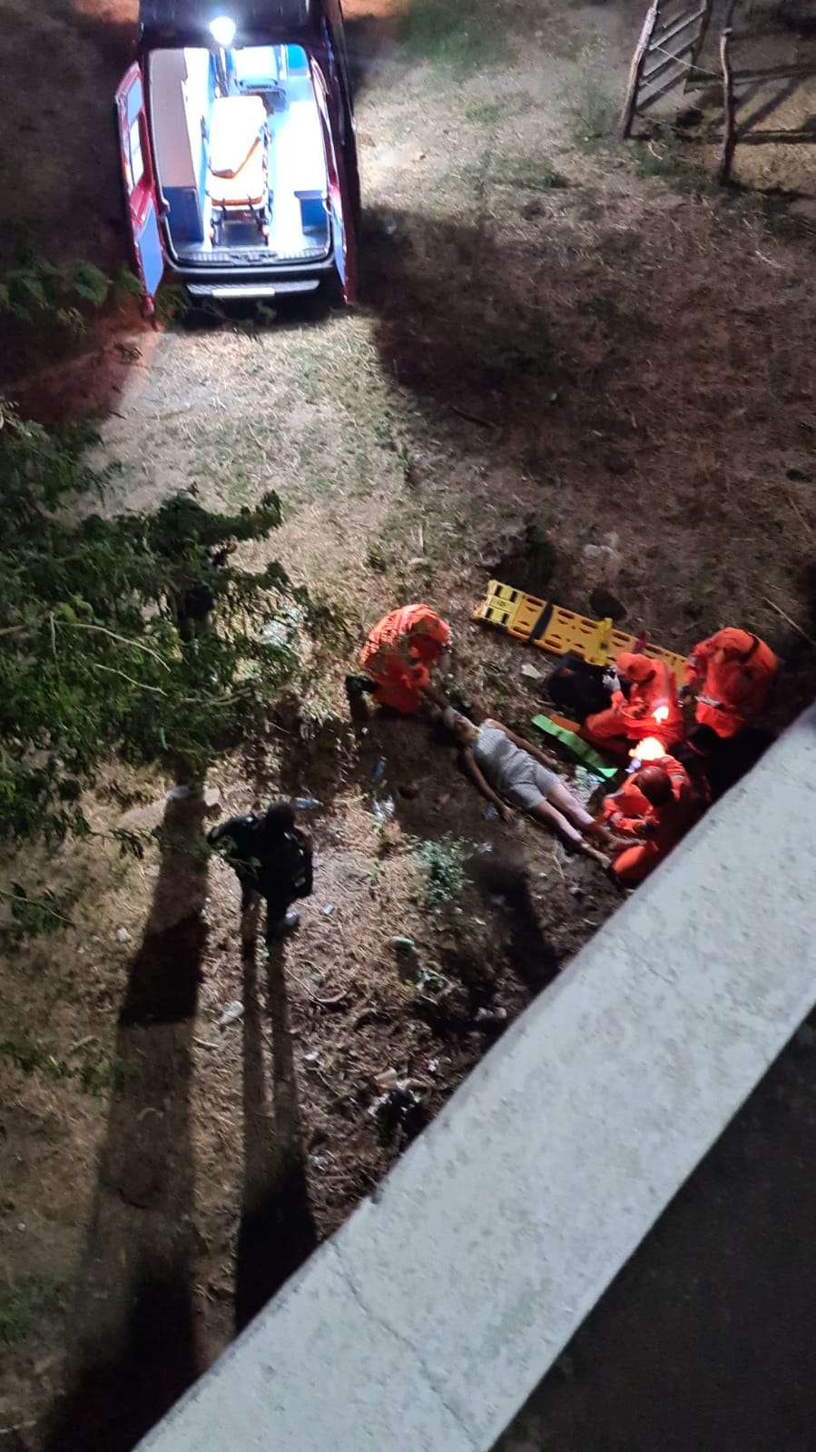 Ninguém soube informar o motivo do pulo. Também não foi repassado o quadro de saúde da vítima.