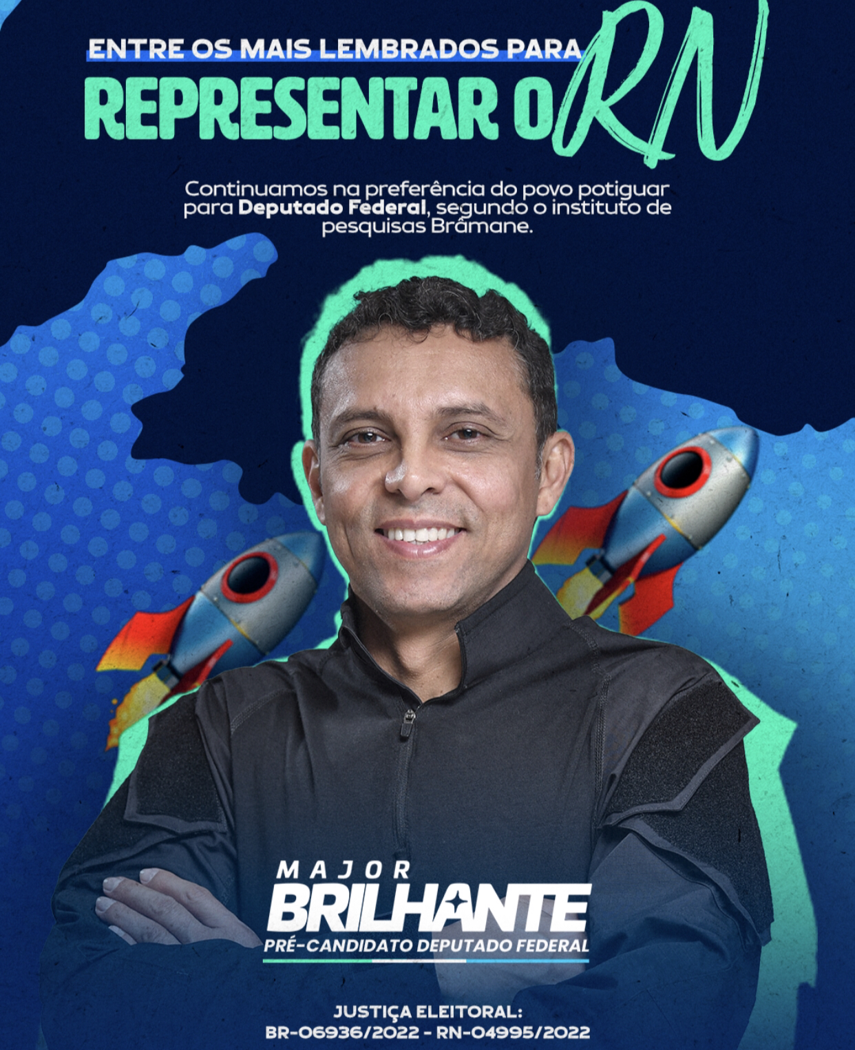 O instituto Brâmane divulgou uma nova rodada de pesquisas no estado, e o Major Brilhante apareceu novamente entre os nomes citados para Deputado Federal no Rio Grande do Norte.