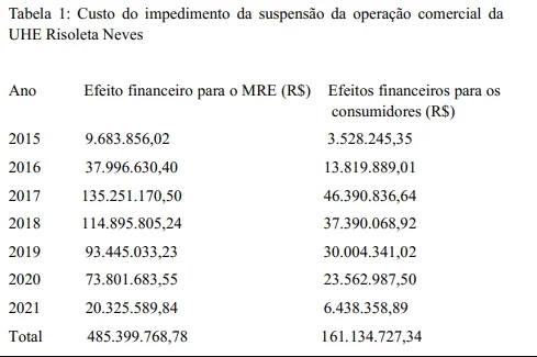 Na prática, todas as usinas pagam as mensalidades para a usina Risoleta Neves, um custo que, depois, é gradativamente repassado aos consumidores de energia do Brasil, por meio da conta de luz. Os dados da Aneel apontam que a situação já gerou prejuízo direto ao consumidor superior a R$ 160 milhões.