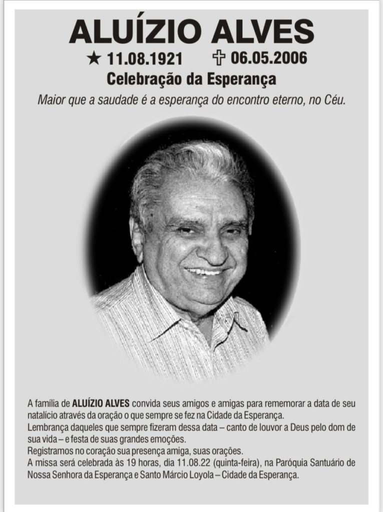 Se aqui estivesse, o ex-ministro Aluízio Alves completaria 101 anos nesta quinta-feira (11). Tradicionalmente, uma Missa será celebrada na Cidade da Esperança, bairro fundado por Aluízio, em sua homenagem. Será às 19h.