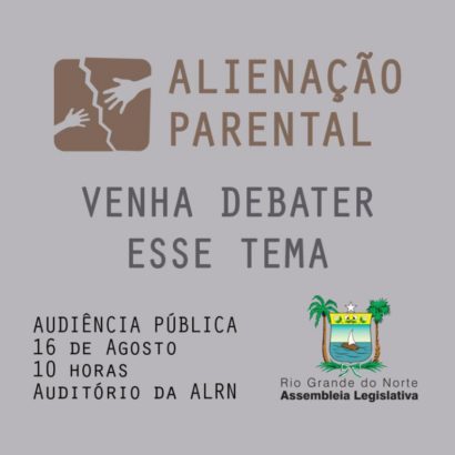 Em busca de equilíbrio para as relações entre as famílias, soluções para uma geração que cresce sob pressão com alienação parental, a Assembleia Legislativa do Rio Grande do Norte lançará a campanha“Alienação parental – os mais prejudicados são os filhos”, que abre espaço para o debate na sociedade sobre o assunto. Estima-se que mais de 20 milhões de pessoas sofrem alienação parental no mundo.
