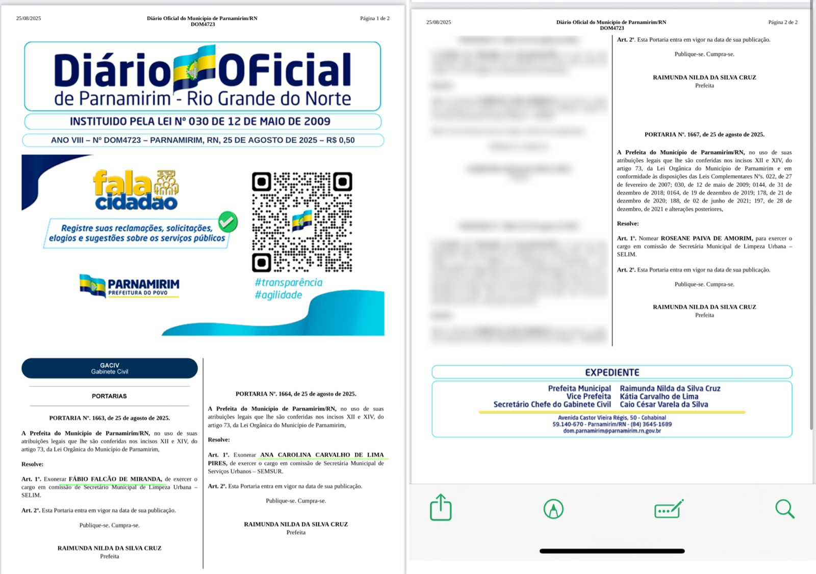 A vice-prefeita de Parnamirim, Kátia Pires, acaba de ser informada por Diária Oficial que seu esposo e sua filha foram exonerados de duas importantes secretarias do município de Parnamirim-RN.