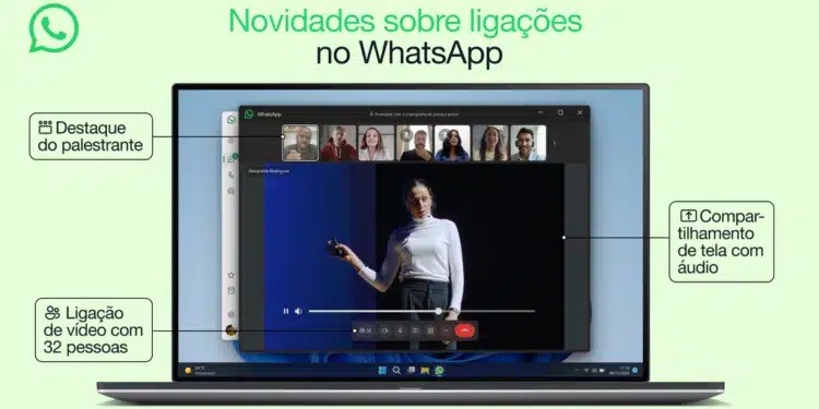 O WhatsApp anunciou uma série de melhorias para as chamadas de vídeo e áudio no aplicativo. Além de aprimorar a qualidade do áudio com recursos de cancelamento de ruído, a plataforma agora permite chamadas de vídeo no estilo Zoom e Google Meet, com até 32 participantes, destaque para palestrantes e a opção de compartilhar a tela com áudio.