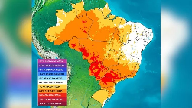 Previsão é de que alguns estados registrem temperaturas 5ºC acima da média