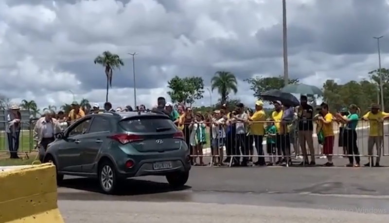 O ministro deixou o carro em que estava e falou com alguns apoiadores que estavam no local.