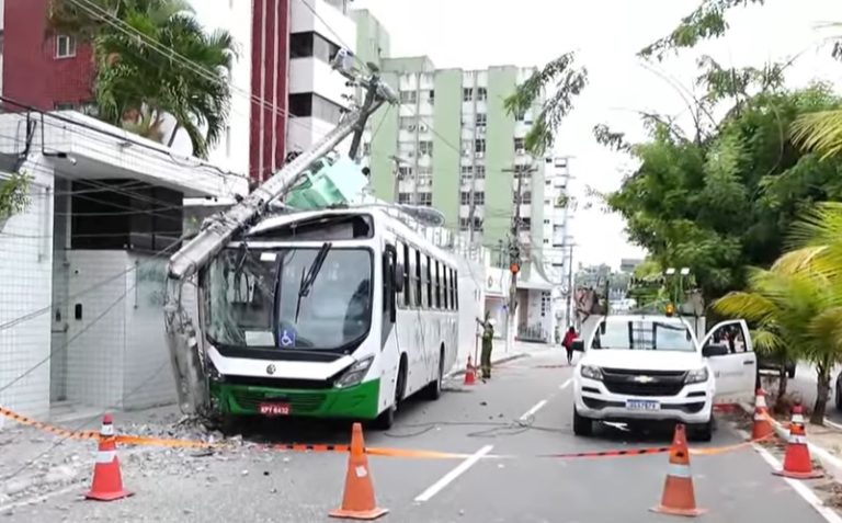 Ônibus bate, derruba poste e deixa quase 7 mil consumidores sem energia elétrica na Zona Leste de Natal