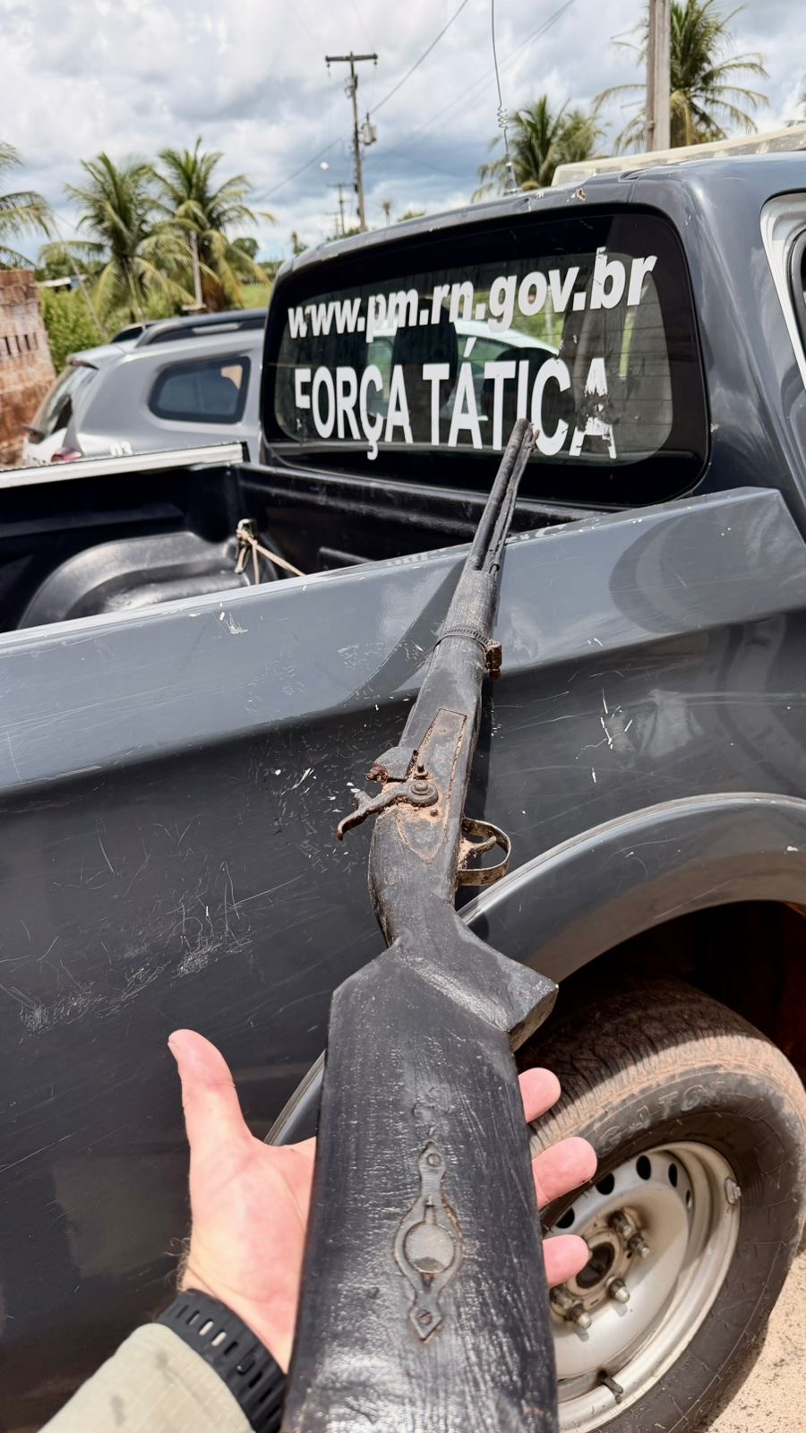 Na tarde desta segunda-feira (02), equipes do Tático Mike 01 e da Reserva 03, do 11º BPM – Batalhão Augusto Severo, realizaram uma apreensão de arma e materiais ligados a possíveis atividades ilícitas na zona rural de Bom Jesus.