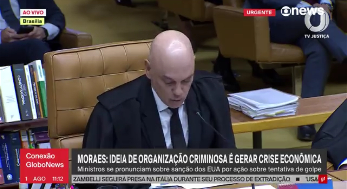 No início da semana, Moraes foi alvo de sanções anunciadas pelo governo dos Estados Unidos, com base na chamada Lei Magnitsky.