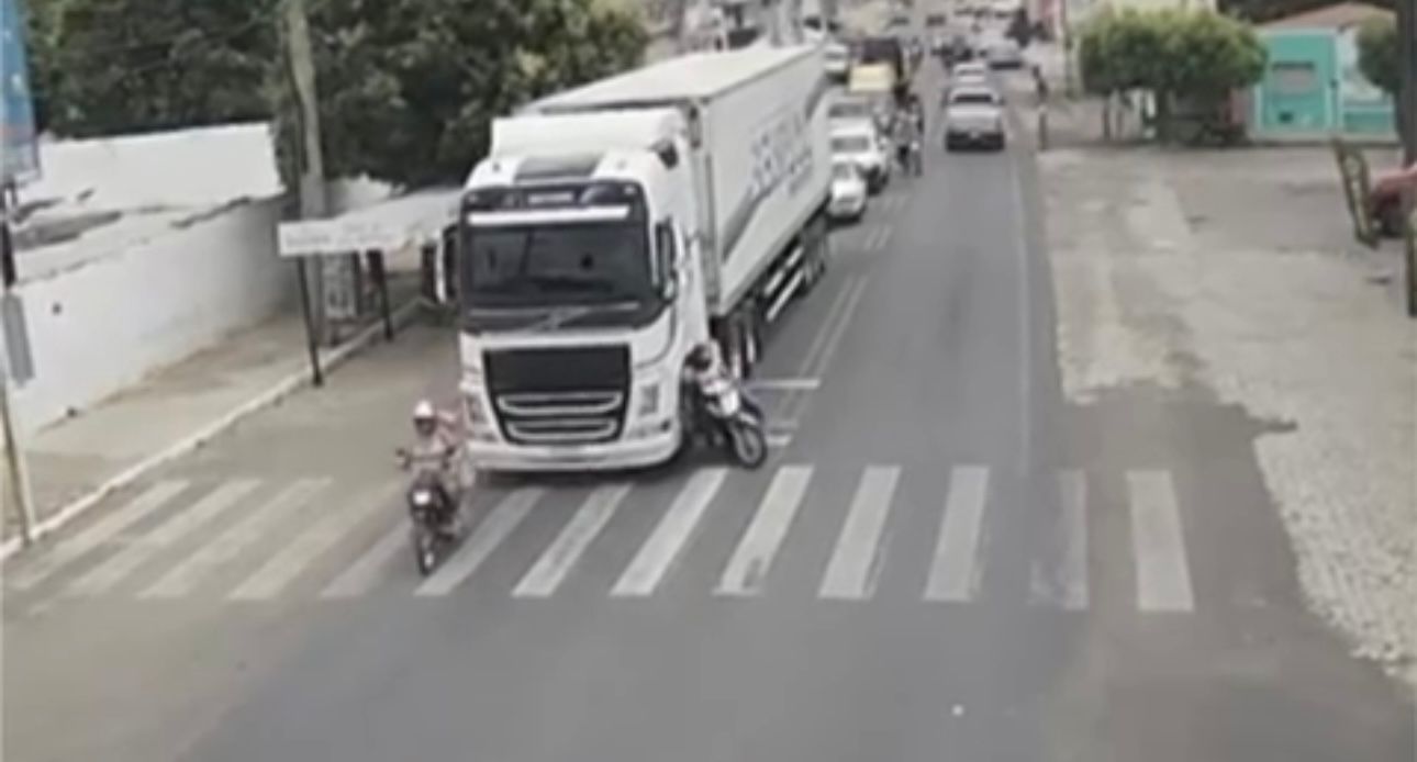 Um vídeo divulgado nas redes sociais mostra o momento em que uma motociclista quase é esmagada por uma carreta. O caso aconteceu na manhã desta sexta-feira (22), na rua Doutor Luiz Carlos, no trecho da RN-016, zona Urbana de Assú. O acidente foi registrado pelo circuito de monitoramento da Secretaria Municipal de Trânsito.