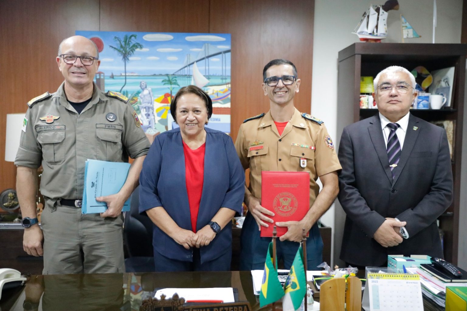 A governadora Fátima Bezerra assinou, nesta quinta-feira (31), a promoção de 1.103 agentes de segurança pública, somente neste mês de agosto, entre praças e oficiais da Polícia Militar e do Corpo de Bombeiros Militar do Rio Grande do Norte. As promoções serão publicadas no Diário Oficial do Estado desta sexta-feira (1º).