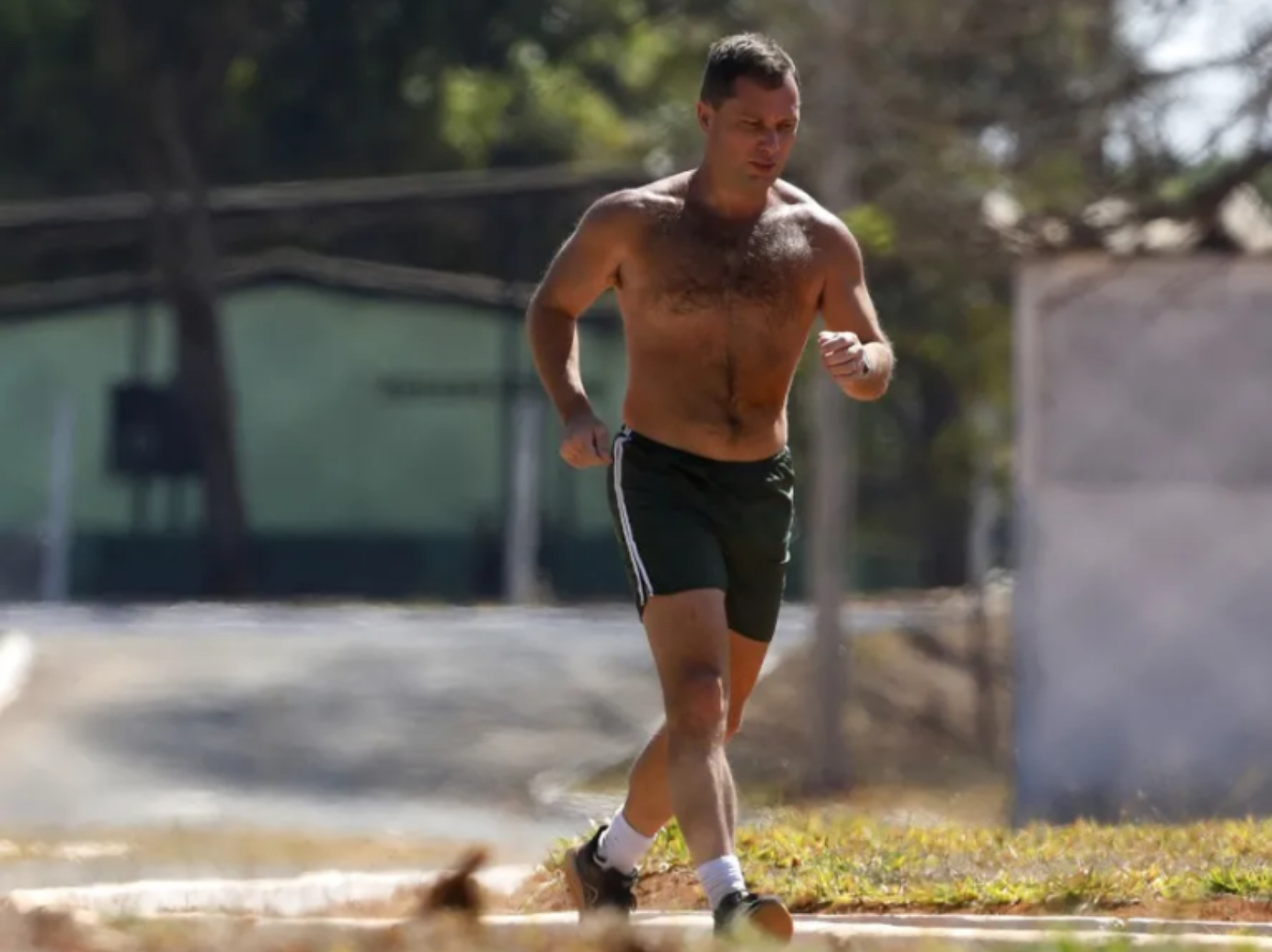 Vestido com um short verde-oliva, tênis esportivo e sem camisa, o tenente-coronel Mauro César Barbosa Cid deixou às 10h20m de ontem a sala onde está preso há 110 dias no Batalhão de Polícia do Exército de Brasília para tomar o banho de sol. Escoltado por um colega militar armado, o ex-ajudante de ordens do ex-presidente Jair Bolsonaro se dirigiu a uma pista de corrida. Cabisbaixo, seguiu à risca a rotina de cerca de uma hora de exercícios, correndo em volta de um campo de futebol.