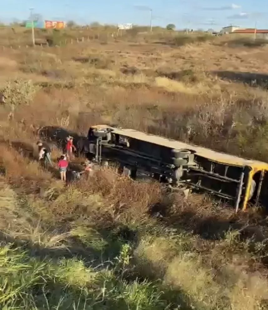Um ônibus escolar tombou na tarde desta terça-feira (1) no km 411 da BR-226, na altura da cidade de Pau dos Ferros, no Alto Oeste potiguar. No momento do acidente, não haviam estudantes no veículo.