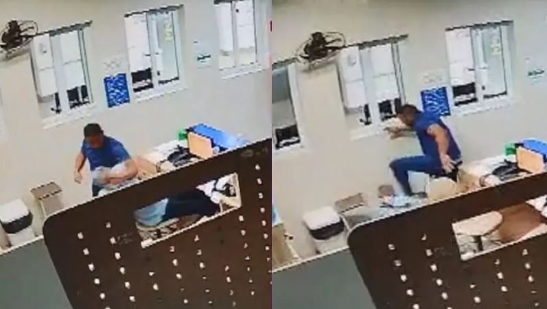 A câmera de segurança do hospital flagrou a ação do agressor. Nas imagens, é possível ver quando o homem de 36 anos vai em direção ao funcionário e o agride com vários socos no rosto, além de empurrá-lo no chão.