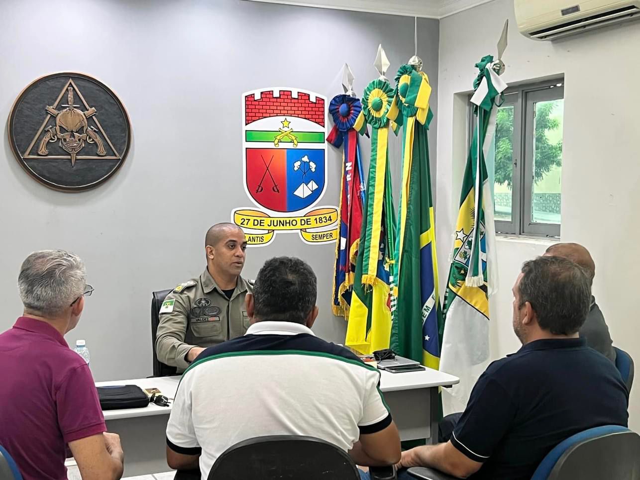 Uma Comissão de Vereadores formada por Lobão Filho, Dedé Boneleiro, Mancuso e Júlio Filho estiveram nesta terça-feira (20), no Comando do 6° Batalhão da Polícia Militar para uma conversa com o novo comandante Flávio Valdez.
