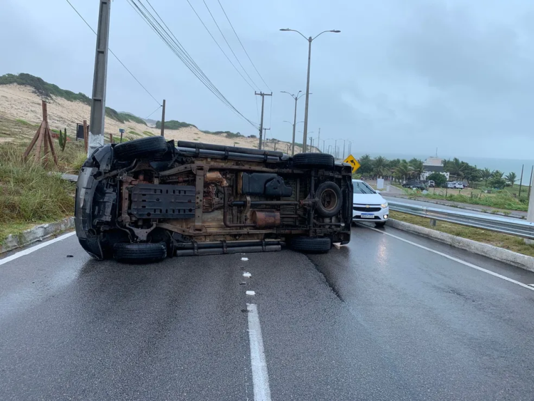 Um motorista perdeu o controle da caminhonete dirigida por ele e capotou o veículo na Via Costeira, em Natal, na manhã desta sexta-feira (9).