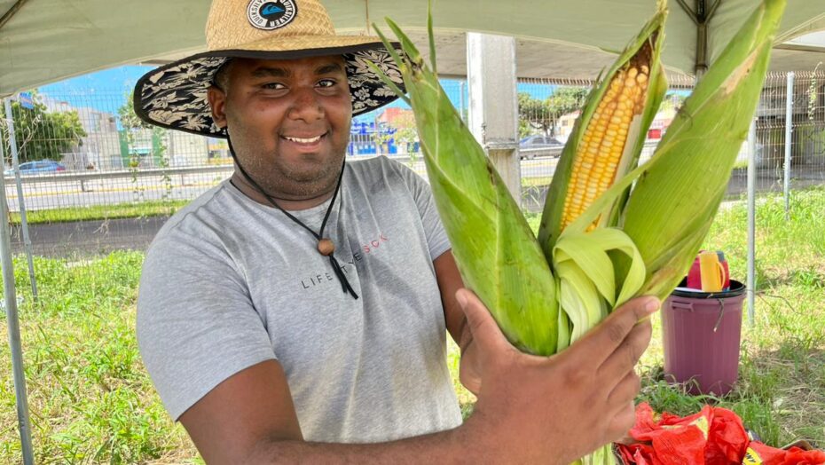 O milho vendido na feira vem de vários polos produtores no Rio Grande do Norte: Touros, São José de Mipibu, Vera Cruz, Pedro Velho, Santa Maria, São Paulo do Potengi e Ipanguaçu. O da barraca dos agricultores familiares Edinho Soares e Tiago Alexandre de Oliveira é oriundo da Vila Assis, em Touros, área de reforma agrária implantada na década de 1970 pelo então governador Cortez Pereira. Eles trabalham com irrigação e variedades com ciclo produtivo em torno de 65 dias.