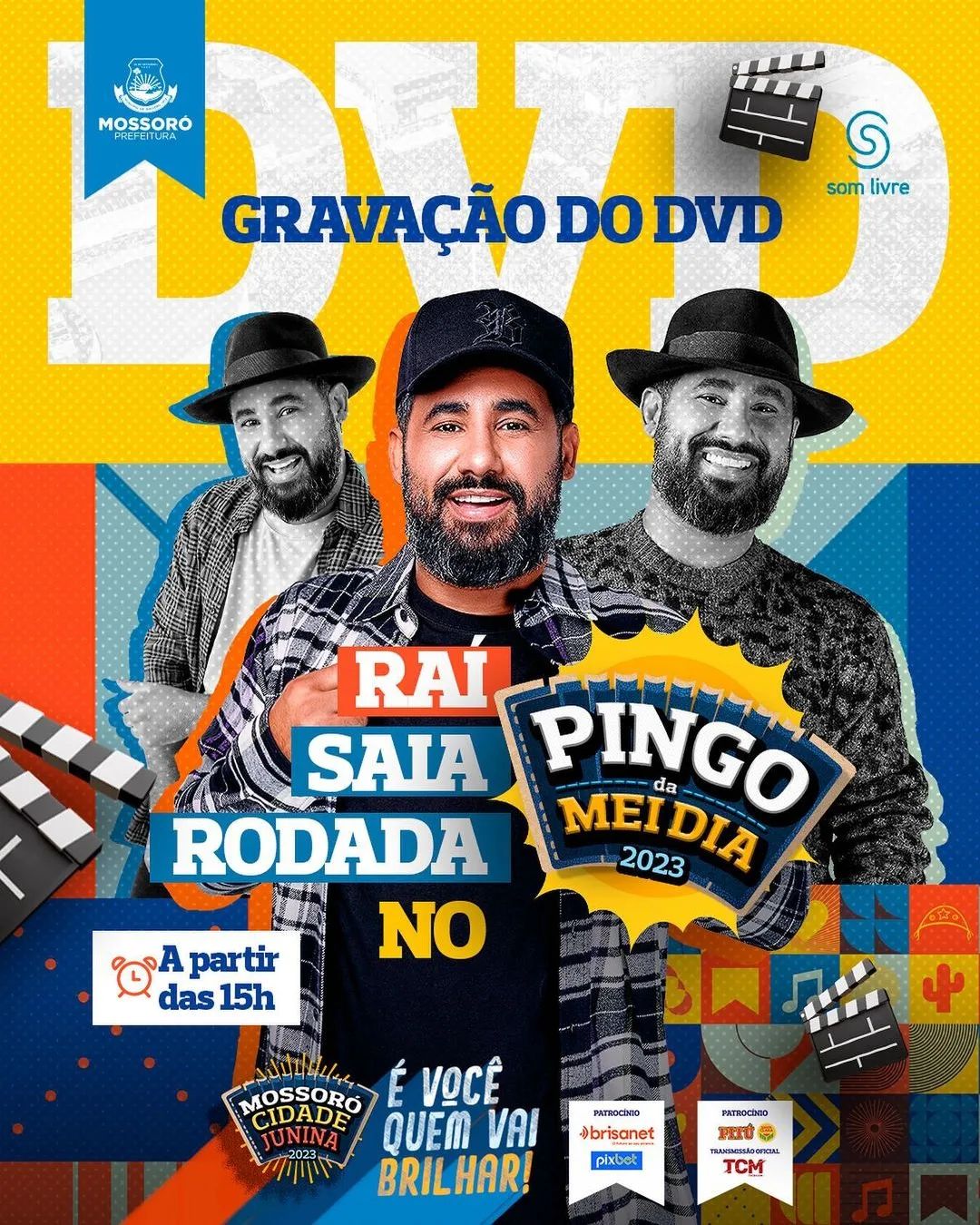 O cantor Rai Saia Rodada gravará seu mais novo DVD durante o “Pingo da Mei Dia”. O maior bloco junino do Brasil será palco de uma megaprodução audiovisual da Som Livre.