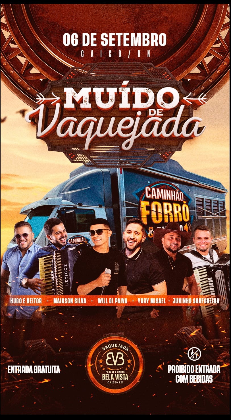 O evento promete reunir amantes da cultura nordestina em uma noite de muita música, tradição e arrasta-pé. No palco, se apresentam Hugo & Heitor, Juninho Sanfoneiro e Yuri Misael, além de participações especiais que vão reforçar a energia da vaquejada.