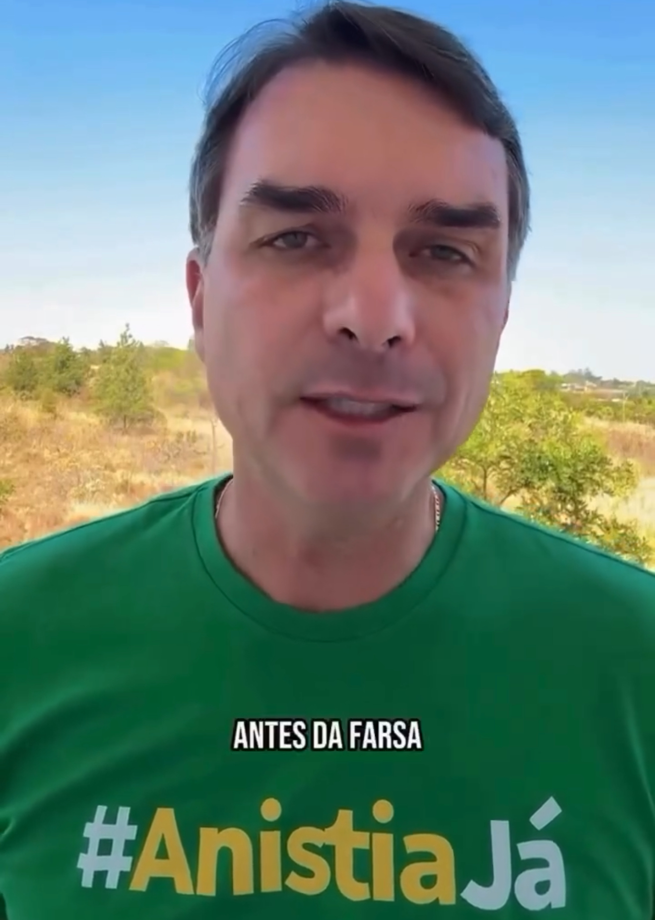 No vídeo, Flávio classificou como “farsa” o julgamento que está em andamento na Corte, no qual seu pai, o ex-presidente Jair Bolsonaro (PL), e outros sete réus respondem por suposta tentativa de golpe de Estado. O processo é relatado pelo ministro Alexandre de Moraes.