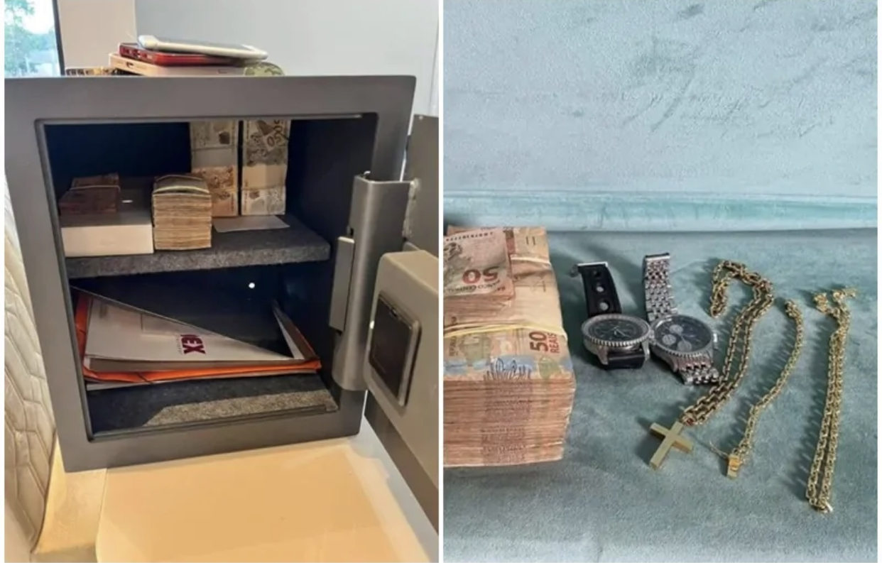 Durante o cumprimento das ações judiciais, os investigadores apreenderam carros de luxo, motos e malotes com documentos e um cofre com dinheiro.